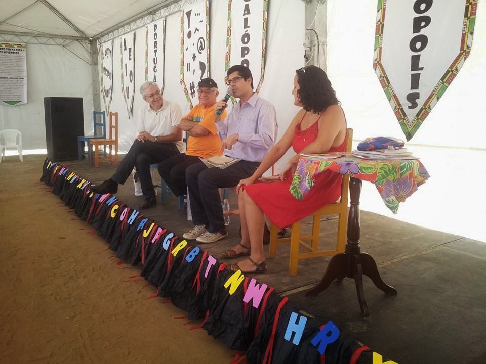 | Cordel em debate: Moreira de Acopiara, Jô Oliveira e Marco Haurélio. Mediação: Cristiane Cobra. |