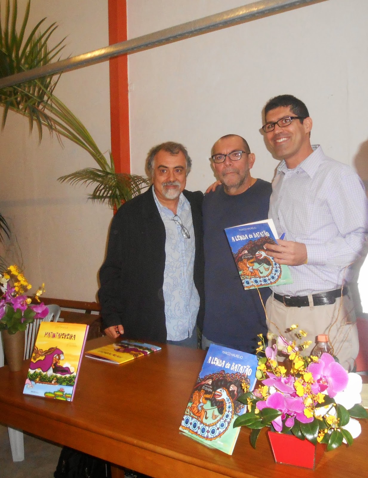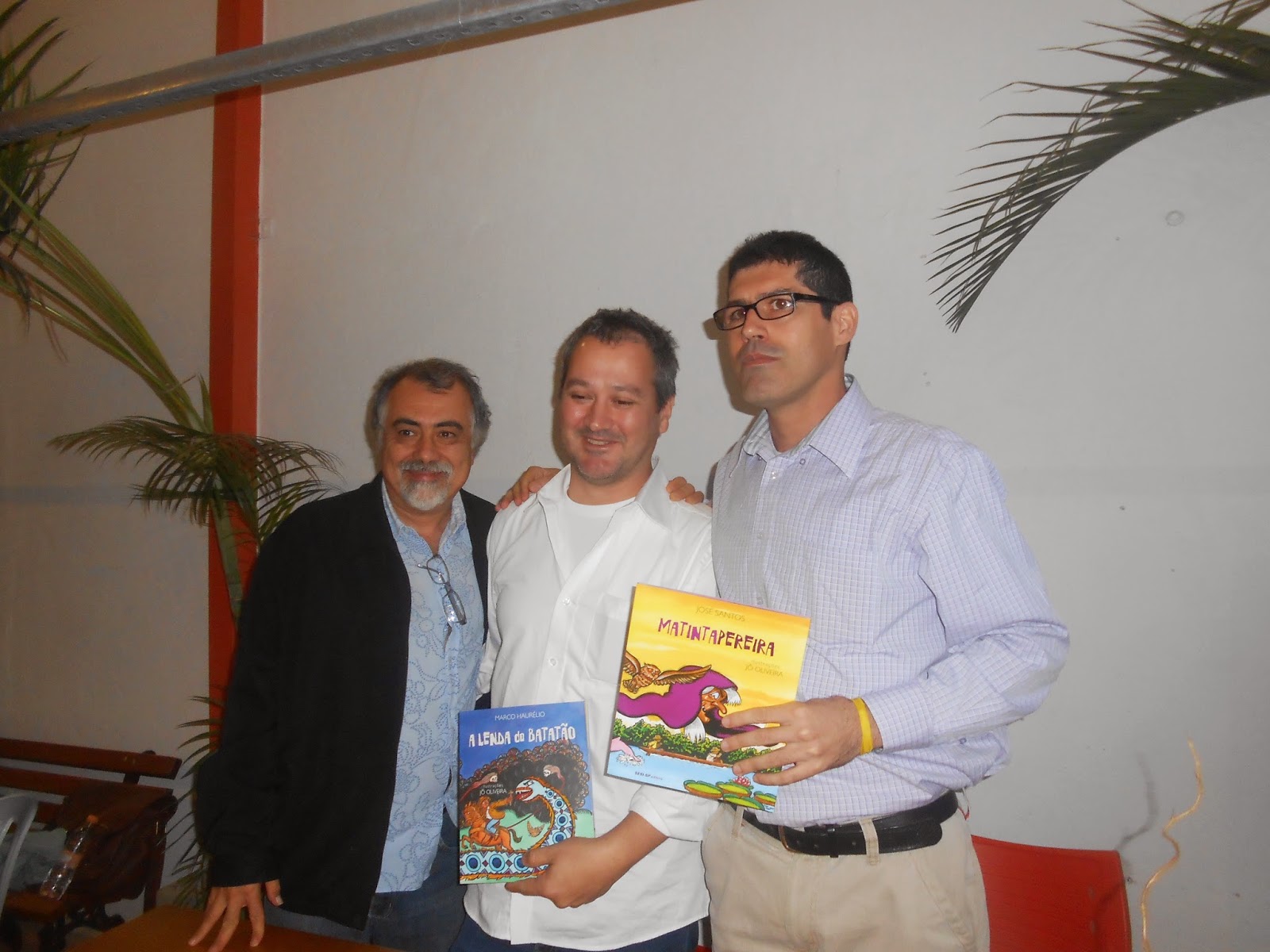Sábado, 10 de maio, na Livraria NoveSete, foram lançados dois títulos, A lenda do Batatão e MatintaPereira. O primeiro, de minha autoria, como todos os livros ambientados no sertão, traz reminiscências da infância e memórias sentimentais (que não são de João Miramar). O segundo, de José Santos, é ambientado na Amazônia e traz uma história de respeito à natureza e às tradições. Ambos ilustrados pelo mestre Jô Oliveira.